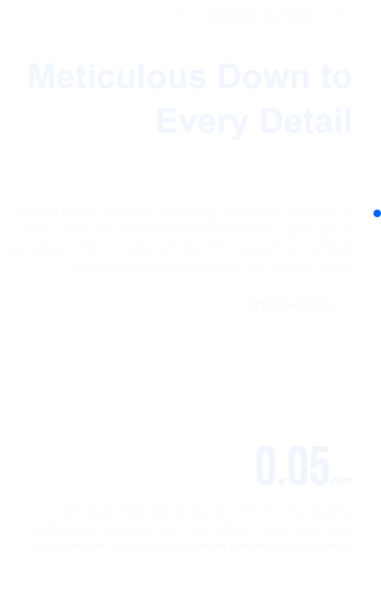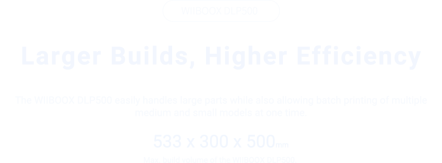 The WIIBOOX DLP500 is a high-resolution, high-precision DLP 3D printer, providing more efficient, professional, and reliable 3D printing capabilities for a wide range of industries.