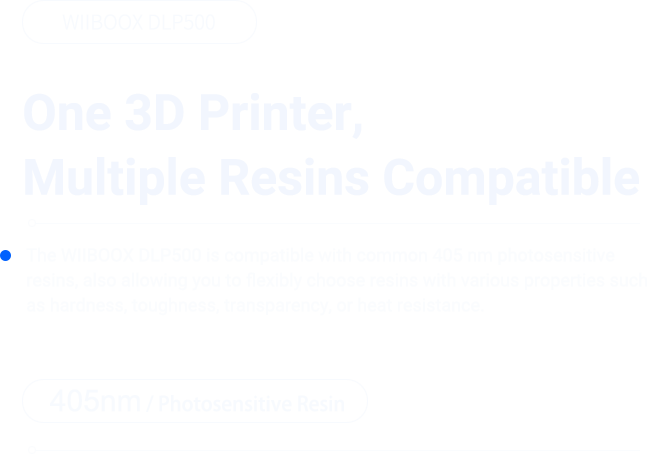The wide range of resin compatibility allows the WIIBOOX DLP500 meets the needs of education, medical device R&D, jewelry design, precision mold manufacturing, and other diverse applications—offering